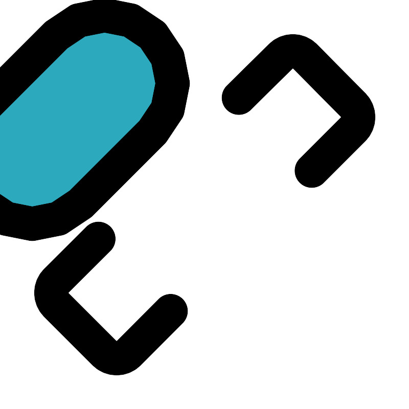 <svg fill="#000000" width="800px" height="800px" viewBox="0 0 24 24" id="smart-band" data-name="Flat Line" xmlns="http://www.w3.org/2000/svg" class="icon flat-line"><rect id="secondary" x="8" y="5" width="8" height="14" rx="4" transform="translate(12 -4.97) rotate(45)" style="fill: rgb(44, 169, 188); stroke-width: 2;"></rect><path id="primary" d="M18.28,10l2.43-2.43a1,1,0,0,0,0-1.42L17.88,3.29a1,1,0,0,0-1.42,0L14,5.72" style="fill: none; stroke: rgb(0, 0, 0); stroke-linecap: round; stroke-linejoin: round; stroke-width: 2;"></path><path id="primary-2" data-name="primary" d="M10,18.24,7.54,20.71a1,1,0,0,1-1.42,0L3.29,17.88a1,1,0,0,1,0-1.42L5.76,14" style="fill: none; stroke: rgb(0, 0, 0); stroke-linecap: round; stroke-linejoin: round; stroke-width: 2;"></path><rect id="primary-3" data-name="primary" x="8" y="5" width="8" height="14" rx="4" transform="translate(12 -4.97) rotate(45)" style="fill: none; stroke: rgb(0, 0, 0); stroke-linecap: round; stroke-linejoin: round; stroke-width: 2;"></rect></svg>