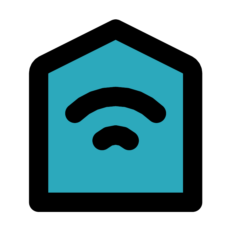 <svg fill="#000000" width="800px" height="800px" viewBox="0 0 24 24" id="smart-home" data-name="Flat Line" xmlns="http://www.w3.org/2000/svg" class="icon flat-line"><path id="secondary" d="M19.45,6.72a1,1,0,0,1,.55.9V21H4V7.62a1,1,0,0,1,.55-.9L12,3Z" style="fill: rgb(44, 169, 188); stroke-width: 2;"></path><path id="primary" d="M19.45,6.72a1,1,0,0,1,.55.9V21H4V7.62a1,1,0,0,1,.55-.9L12,3Z" style="fill: none; stroke: rgb(0, 0, 0); stroke-linecap: round; stroke-linejoin: round; stroke-width: 2;"></path><path id="primary-2" data-name="primary" d="M16.24,11.76a6,6,0,0,0-8.48,0" style="fill: none; stroke: rgb(0, 0, 0); stroke-linecap: round; stroke-linejoin: round; stroke-width: 2;"></path><path id="primary-3" data-name="primary" d="M13.41,14.59a2,2,0,0,0-2.82,0" style="fill: none; stroke: rgb(0, 0, 0); stroke-linecap: round; stroke-linejoin: round; stroke-width: 2;"></path></svg>
