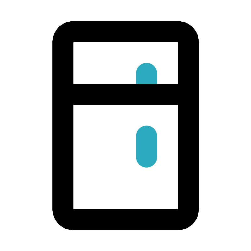 <svg fill="#000000" width="800px" height="800px" viewBox="0 0 24 24" id="smart-refrigerator" data-name="Line Color" xmlns="http://www.w3.org/2000/svg" class="icon line-color"><path id="secondary" d="M14,15V13m0-6V9" style="fill: none; stroke: rgb(44, 169, 188); stroke-linecap: round; stroke-linejoin: round; stroke-width: 2;"></path><path id="primary" d="M18,4V20a1,1,0,0,1-1,1H7a1,1,0,0,1-1-1V4A1,1,0,0,1,7,3H17A1,1,0,0,1,18,4ZM17,3H7A1,1,0,0,0,6,4V9H18V4A1,1,0,0,0,17,3Z" style="fill: none; stroke: rgb(0, 0, 0); stroke-linecap: round; stroke-linejoin: round; stroke-width: 2;"></path></svg>