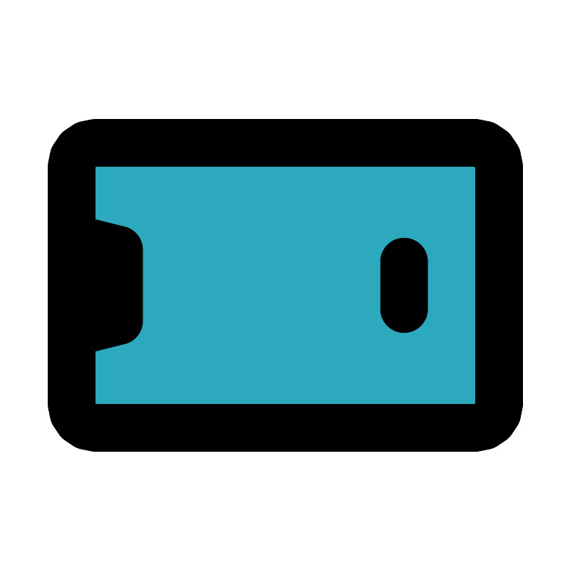 <svg fill="#000000" width="800px" height="800px" viewBox="0 0 24 24" id="smartphone-rotate-left-1" data-name="Flat Line" xmlns="http://www.w3.org/2000/svg" class="icon flat-line"><path id="secondary" d="M20,6H4A1,1,0,0,0,3,7v3l2,.5v3L3,14v3a1,1,0,0,0,1,1H20a1,1,0,0,0,1-1V7A1,1,0,0,0,20,6Z" style="fill: rgb(44, 169, 188); stroke-width: 2;"></path><path id="primary" d="M17,11v2M3,10v4l2-.5v-3ZM20,6H4A1,1,0,0,0,3,7V17a1,1,0,0,0,1,1H20a1,1,0,0,0,1-1V7A1,1,0,0,0,20,6Z" style="fill: none; stroke: rgb(0, 0, 0); stroke-linecap: round; stroke-linejoin: round; stroke-width: 2;"></path></svg>