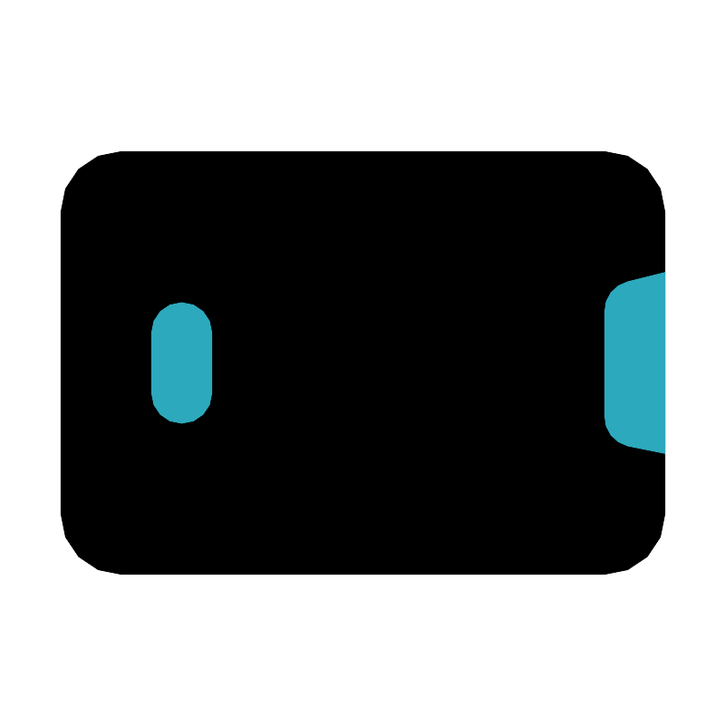 <svg fill="#000000" width="800px" height="800px" viewBox="0 0 24 24" id="smartphone-rotate-right" data-name="Flat Color" xmlns="http://www.w3.org/2000/svg" class="icon flat-color"><rect id="primary" x="2" y="5" width="20" height="14" rx="2" style="fill: rgb(0, 0, 0);"></rect><path id="secondary" d="M5,13V11a1,1,0,0,1,2,0v2a1,1,0,0,1-2,0ZM22,9l-1.24.31a1,1,0,0,0-.76,1v3.44a1,1,0,0,0,.76,1L22,15Z" style="fill: rgb(44, 169, 188);"></path></svg>