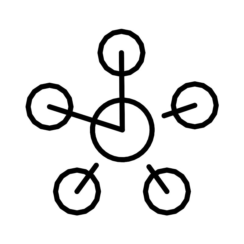 <svg width="800px" height="800px" viewBox="0 0 48 48" xmlns="http://www.w3.org/2000/svg"><defs><style>.a{fill:none;stroke:#000000;stroke-linecap:round;stroke-linejoin:round;}</style></defs><circle class="a" cx="24.029" cy="25.5262" r="5.8697"/><circle class="a" cx="38.2831" cy="20.6952" r="4.2169"/><circle class="a" cx="32.8036" cy="37.6431" r="4.2169"/><circle class="a" cx="15.1202" cy="37.6431" r="4.2169"/><circle class="a" cx="9.7169" cy="20.9672" r="4.2169"/><circle class="a" cx="23.864" cy="10.3569" r="4.2169"/><line class="a" x1="23.864" y1="10.3569" x2="24.029" y2="25.5262"/><line class="a" x1="38.2831" y1="20.6952" x2="32.2528" y2="22.739"/><line class="a" x1="32.8036" y1="37.6431" x2="29.2825" y2="32.7807"/><line class="a" x1="15.1202" y1="37.6431" x2="18.9103" y2="32.4881"/><line class="a" x1="9.7169" y1="20.9672" x2="24.029" y2="25.5262"/></svg>