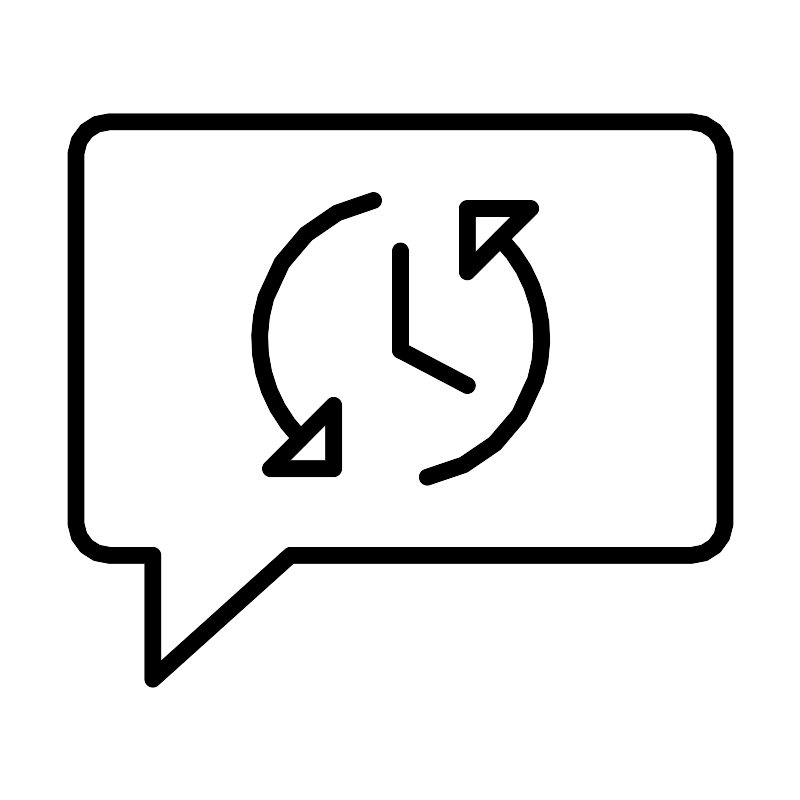 <svg width="800px" height="800px" viewBox="0 0 48 48" xmlns="http://www.w3.org/2000/svg"><defs><style>.a{fill:none;stroke:#000000;stroke-linecap:round;stroke-linejoin:round;}</style></defs><path class="a" d="M41.47,7.28H6.53a2,2,0,0,0-2,1.88V31.41a2,2,0,0,0,2,1.88H9.14v7.43l8.26-7.43H41.47a2,2,0,0,0,2-1.88V9.16A2,2,0,0,0,41.47,7.28Z"/><path class="a" d="M25.61,28.6A8.47,8.47,0,0,0,30,14.3"/><path class="a" d="M22.38,12A8.47,8.47,0,0,0,18,26.27"/><polygon class="a" points="29.39 14.9 28.01 16.28 28.01 12.48 31.81 12.48 31.81 12.48 30.42 13.86 29.39 14.9"/><polygon class="a" points="18.61 25.67 19.99 24.29 19.99 28.09 16.2 28.09 17.58 26.71 18.61 25.67"/><line class="a" x1="24" y1="20.99" x2="24" y2="15.03"/><line class="a" x1="28.01" y1="23.1" x2="24" y2="20.99"/></svg>