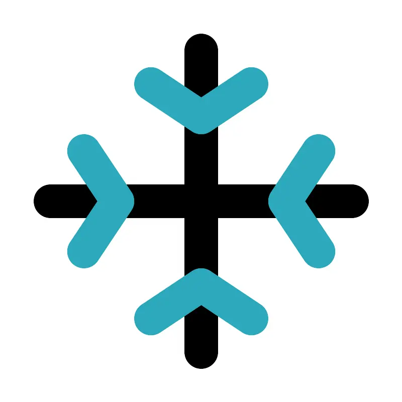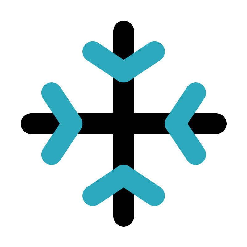 <svg fill="#000000" width="800px" height="800px" viewBox="0 0 24 24" id="snow" data-name="Line Color" xmlns="http://www.w3.org/2000/svg" class="icon line-color"><path id="primary" d="M3,12H21M12,3V21" style="fill: none; stroke: rgb(0, 0, 0); stroke-linecap: round; stroke-linejoin: round; stroke-width: 2;"></path><polyline id="secondary" points="19 9 17 12 19 15" style="fill: none; stroke: rgb(44, 169, 188); stroke-linecap: round; stroke-linejoin: round; stroke-width: 2;"></polyline><polyline id="secondary-2" data-name="secondary" points="5 15 7 12 5 9" style="fill: none; stroke: rgb(44, 169, 188); stroke-linecap: round; stroke-linejoin: round; stroke-width: 2;"></polyline><polyline id="secondary-3" data-name="secondary" points="15 19 12 17 9 19" style="fill: none; stroke: rgb(44, 169, 188); stroke-linecap: round; stroke-linejoin: round; stroke-width: 2;"></polyline><polyline id="secondary-4" data-name="secondary" points="9 5 12 7 15 5" style="fill: none; stroke: rgb(44, 169, 188); stroke-linecap: round; stroke-linejoin: round; stroke-width: 2;"></polyline></svg>