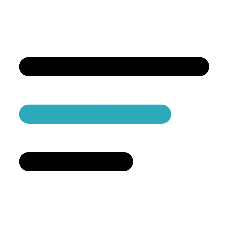 <svg fill="#000000" width="800px" height="800px" viewBox="0 0 24 24" id="sort" xmlns="http://www.w3.org/2000/svg" class="icon multi-color"><line id="secondary-stroke" x1="3" y1="12" x2="17" y2="12" style="fill: none; stroke: rgb(44, 169, 188); stroke-linecap: round; stroke-linejoin: round; stroke-width: 2;"></line><path id="primary-stroke" d="M3,7H21M3,17H13" style="fill: none; stroke: rgb(0, 0, 0); stroke-linecap: round; stroke-linejoin: round; stroke-width: 2;"></path></svg>