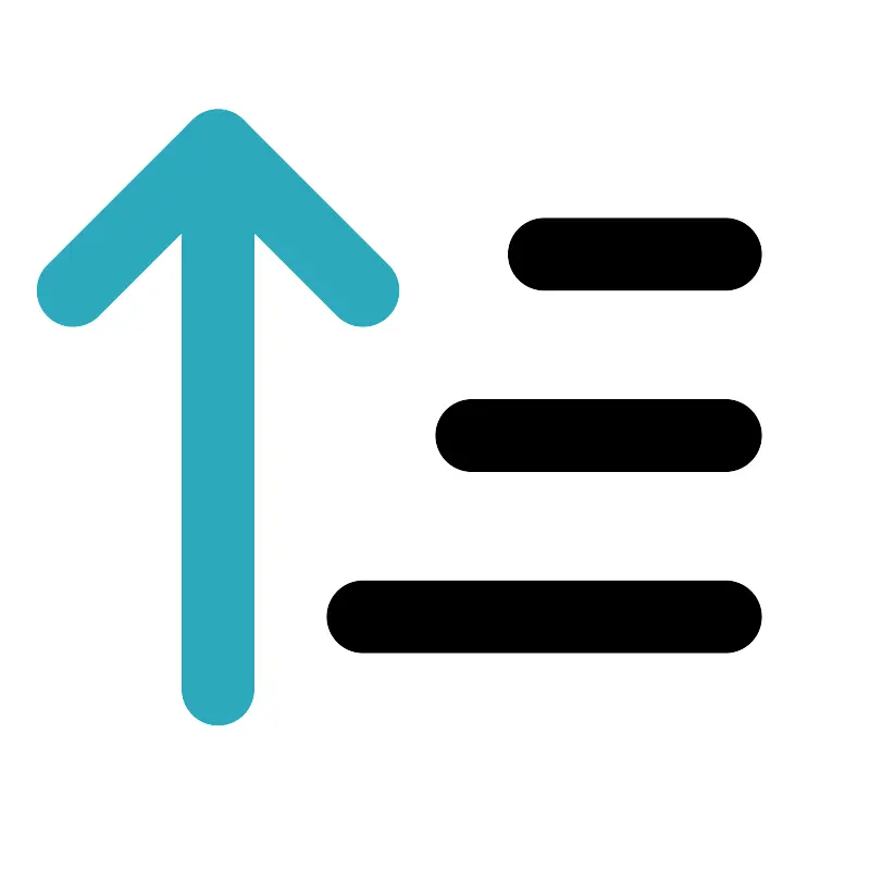 <svg fill="#000000" width="800px" height="800px" viewBox="0 0 24 24" id="sort-descending" data-name="Line Color" xmlns="http://www.w3.org/2000/svg" class="icon line-color"><polyline id="secondary" points="2 8 6 4 10 8" style="fill: none; stroke: rgb(44, 169, 188); stroke-linecap: round; stroke-linejoin: round; stroke-width: 2;"></polyline><line id="secondary-2" data-name="secondary" x1="6" y1="4" x2="6" y2="19" style="fill: none; stroke: rgb(44, 169, 188); stroke-linecap: round; stroke-linejoin: round; stroke-width: 2;"></line><path id="primary" d="M20,7H15m5,5H13m7,5H10" style="fill: none; stroke: rgb(0, 0, 0); stroke-linecap: round; stroke-linejoin: round; stroke-width: 2;"></path></svg>