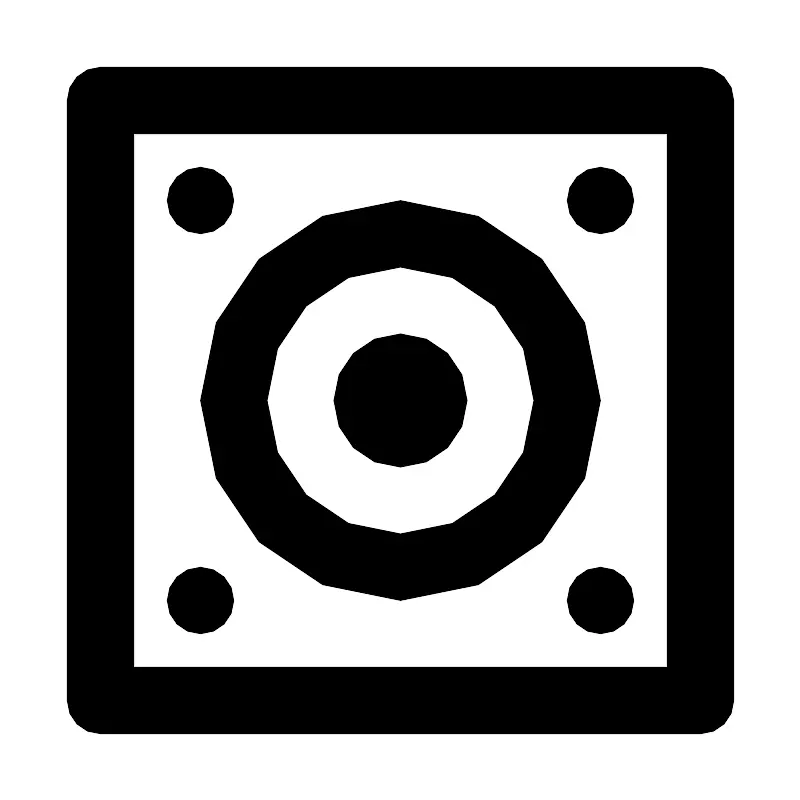 <svg fill="#000000" width="800px" height="800px" viewBox="0 0 24 24" xmlns="http://www.w3.org/2000/svg"><path d="M2,21a1,1,0,0,0,1,1H21a1,1,0,0,0,1-1V3a1,1,0,0,0-1-1H3A1,1,0,0,0,2,3ZM4,4H20V20H4Zm8,2a6,6,0,1,0,6,6A6.006,6.006,0,0,0,12,6Zm0,10a4,4,0,1,1,4-4A4,4,0,0,1,12,16Zm2-4a2,2,0,1,1-2-2A2,2,0,0,1,14,12ZM5,6A1,1,0,1,1,6,7,1,1,0,0,1,5,6ZM19,6a1,1,0,1,1-1-1A1,1,0,0,1,19,6ZM7,18a1,1,0,1,1-1-1A1,1,0,0,1,7,18Zm12,0a1,1,0,1,1-1-1A1,1,0,0,1,19,18Z"/></svg>