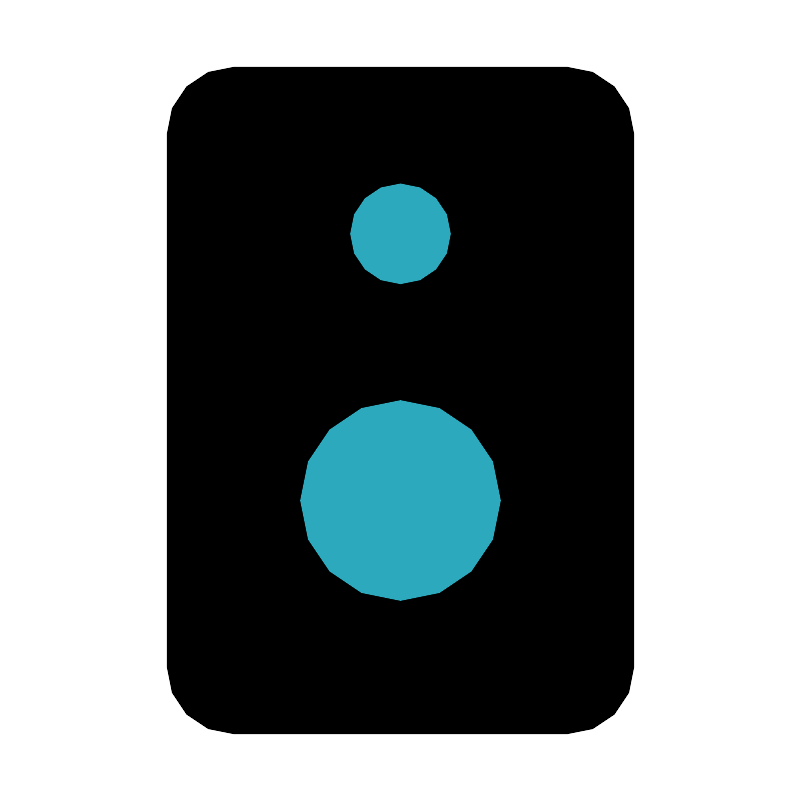 <svg fill="#000000" width="800px" height="800px" viewBox="0 0 24 24" id="speaker-music" data-name="Flat Color" xmlns="http://www.w3.org/2000/svg" class="icon flat-color"><rect id="primary" x="5" y="2" width="14" height="20" rx="2" style="fill: rgb(0, 0, 0);"></rect><path id="secondary" d="M15,15a3,3,0,1,1-3-3A3,3,0,0,1,15,15ZM12,5.5A1.5,1.5,0,1,0,13.5,7,1.5,1.5,0,0,0,12,5.5Z" style="fill: rgb(44, 169, 188);"></path></svg>