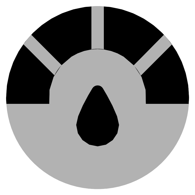 <svg width="800px" height="800px" viewBox="0 0 32 32" id="OBJECT" xmlns="http://www.w3.org/2000/svg"><defs><style>.cls-1{fill:#b2b2b2;}</style></defs><title/><circle class="cls-1" cx="16" cy="16" r="15"/><path d="M16.85,14.48a1,1,0,0,0-1.7,0c-.63,1-2.65,4.48-2.65,6a3.5,3.5,0,0,0,7,0C19.5,19,17.48,15.5,16.85,14.48Z"/><path d="M16,1A15,15,0,0,0,1,16c0,.34,0,.67.05,1h7a8,8,0,1,1,15.88,0h7c0-.33.05-.66.05-1A15,15,0,0,0,16,1Z"/><path class="cls-1" d="M16,1c-.34,0-.67,0-1,.05v7a7.18,7.18,0,0,1,2,0v-7C16.67,1,16.34,1,16,1Z"/><path class="cls-1" d="M3.84,7.25l5.07,5.07a8.4,8.4,0,0,1,1.15-1.67L5.12,5.7A15.71,15.71,0,0,0,3.84,7.25Z"/><path class="cls-1" d="M26.88,5.7l-4.94,5a8.4,8.4,0,0,1,1.15,1.67l5.07-5.07A15.71,15.71,0,0,0,26.88,5.7Z"/></svg>