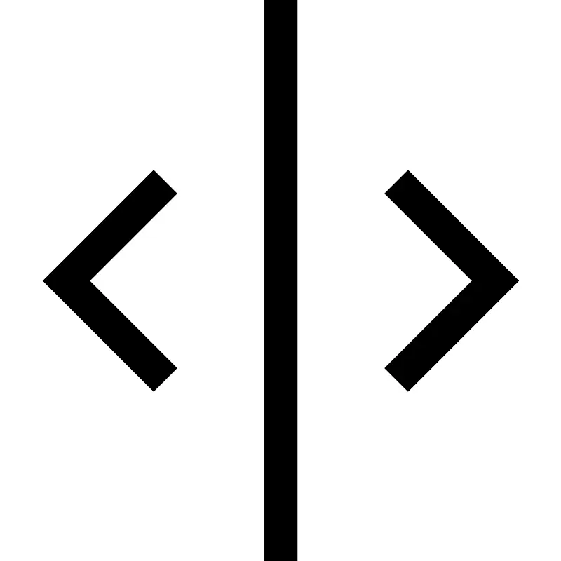 <path d="M5.354 5.854l-2.647 2.646 2.646 2.646-0.707 0.707-3.353-3.353 3.354-3.354 0.707 0.708zM12.354 5.146l-0.707 0.707 2.646 2.647-2.646 2.646 0.707 0.707 3.353-3.353-3.353-3.354zM8 17h1v-17h-1v17z" fill="#000000" />
