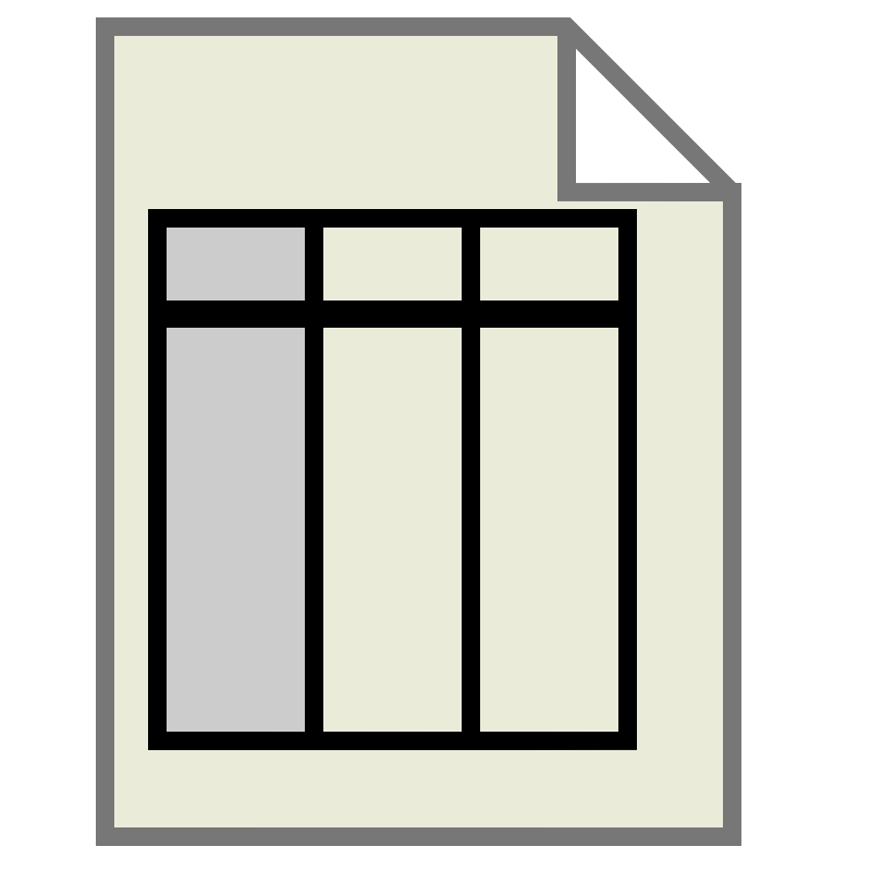 <path style="fill:#EBEBDA;stroke:#777777;stroke-width:2;" d="m 65,3 0,19 19,0 0,74 -72,0 0,-93 53,0 19,19"/>