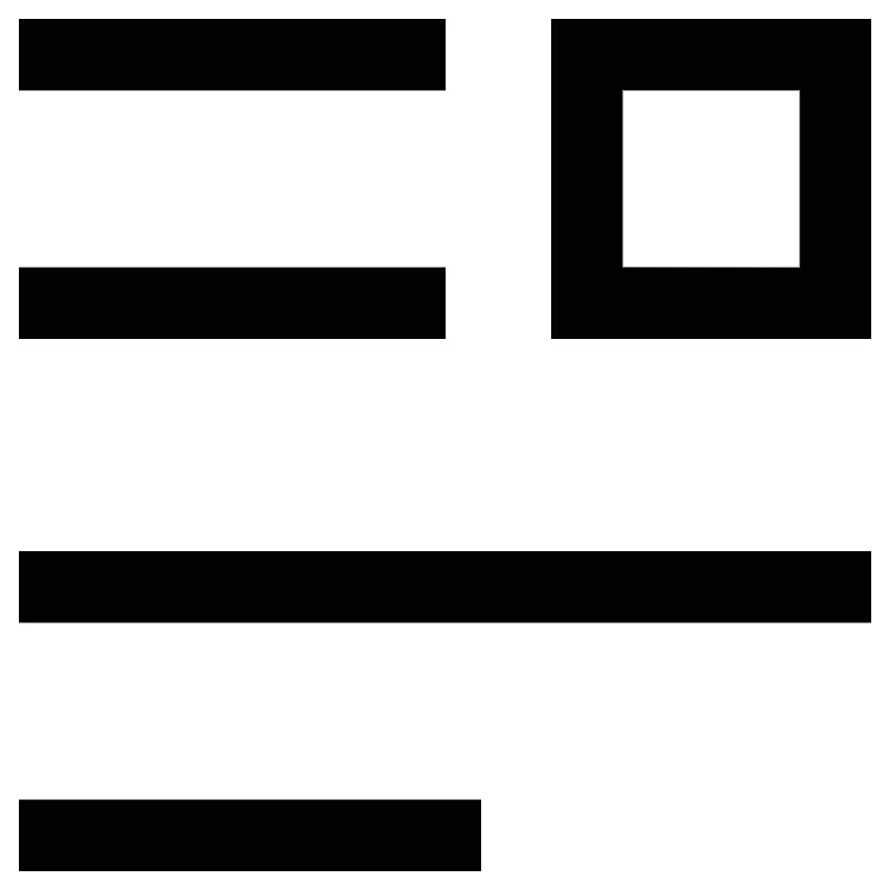 <svg width="800px" height="800px" viewBox="0 0 24 24" id="Layer_1" data-name="Layer 1" xmlns="http://www.w3.org/2000/svg"><defs><style>.cls-1{fill:none;stroke:#020202;stroke-miterlimit:10;stroke-width:1.92px;}</style></defs><rect class="cls-1" x="15.83" y="1.46" width="6.71" height="6.71"/><line class="cls-1" x1="12" y1="1.46" x2="0.5" y2="1.46"/><line class="cls-1" x1="12" y1="8.17" x2="0.5" y2="8.17"/><line class="cls-1" x1="0.5" y1="15.83" x2="23.5" y2="15.83"/><line class="cls-1" x1="0.5" y1="22.54" x2="12.96" y2="22.54"/></svg>