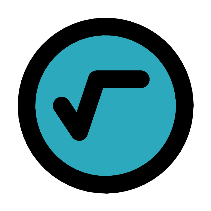 <svg fill="#000000" width="800px" height="800px" viewBox="0 0 24 24" id="square-root-circle" data-name="Flat Line" xmlns="http://www.w3.org/2000/svg" class="icon flat-line"><circle id="secondary" cx="12" cy="12" r="9" style="fill: rgb(44, 169, 188); stroke-width: 2;"></circle><polyline id="primary" points="7 12 9 15 11 9 16 9" style="fill: none; stroke: rgb(0, 0, 0); stroke-linecap: round; stroke-linejoin: round; stroke-width: 2;"></polyline><circle id="primary-2" data-name="primary" cx="12" cy="12" r="9" style="fill: none; stroke: rgb(0, 0, 0); stroke-linecap: round; stroke-linejoin: round; stroke-width: 2;"></circle></svg>