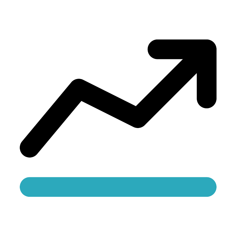 <svg fill="#000000" width="800px" height="800px" viewBox="0 0 24 24" id="statistic-grow" xmlns="http://www.w3.org/2000/svg" class="icon multi-color"><title style="stroke-width: 2;">statistic grow</title><path id="primary-stroke" d="M21,5l-7,7L8,9,3,15m18-5V5H16" style="fill: none; stroke: rgb(0, 0, 0); stroke-linecap: round; stroke-linejoin: round; stroke-width: 2;"></path><line id="secondary-stroke" x1="3" y1="19" x2="21" y2="19" style="fill: none; stroke: rgb(44, 169, 188); stroke-linecap: round; stroke-linejoin: round; stroke-width: 2;"></line></svg>