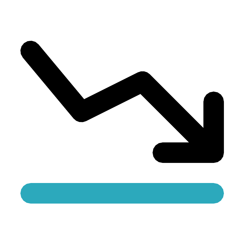 <svg fill="#000000" width="800px" height="800px" viewBox="0 0 24 24" id="statistic-low" data-name="Flat Color" xmlns="http://www.w3.org/2000/svg" class="icon flat-color"><path id="secondary" d="M21,20H3a1,1,0,0,1,0-2H21a1,1,0,0,1,0,2Z" style="fill: rgb(44, 169, 188);"></path><path id="primary" d="M21,9a1,1,0,0,0-1,1v2.59l-5.29-5.3a1,1,0,0,0-1.16-.18L8.26,9.75,3.77,4.36A1,1,0,0,0,2.23,5.64l5,6a1,1,0,0,0,1.22.25L13.8,9.22,18.59,14H16a1,1,0,0,0,0,2h5a1,1,0,0,0,1-1V10A1,1,0,0,0,21,9Z" style="fill: rgb(0, 0, 0);"></path></svg>