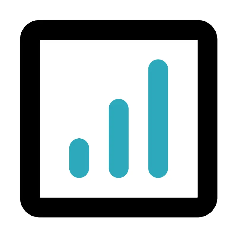 <svg fill="#000000" width="800px" height="800px" viewBox="0 0 24 24" id="stats" data-name="Line Color" xmlns="http://www.w3.org/2000/svg" class="icon line-color"><path id="secondary" d="M12,17V11M8,17V15m8,2V7" style="fill: none; stroke: rgb(44, 169, 188); stroke-linecap: round; stroke-linejoin: round; stroke-width: 2;"></path><rect id="primary" x="3" y="3" width="18" height="18" rx="1" style="fill: none; stroke: rgb(0, 0, 0); stroke-linecap: round; stroke-linejoin: round; stroke-width: 2;"></rect></svg>