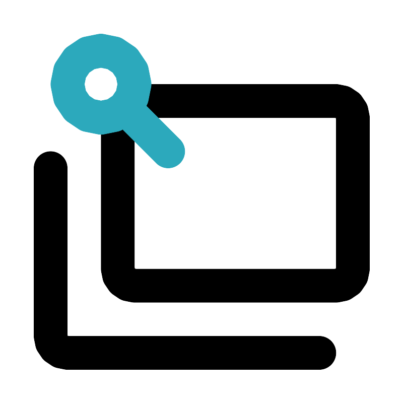 <svg fill="#000000" width="800px" height="800px" viewBox="0 0 24 24" id="sticky-notes-4" data-name="Line Color" xmlns="http://www.w3.org/2000/svg" class="icon line-color"><path id="primary" d="M8,6H20a1,1,0,0,1,1,1v9a1,1,0,0,1-1,1H8a1,1,0,0,1-1-1V7" style="fill: none; stroke: rgb(0, 0, 0); stroke-linecap: round; stroke-linejoin: round; stroke-width: 2;"></path><path id="primary-2" data-name="primary" d="M3,10V20a1,1,0,0,0,1,1H19" style="fill: none; stroke: rgb(0, 0, 0); stroke-linecap: round; stroke-linejoin: round; stroke-width: 2;"></path><path id="secondary" d="M4,5A2,2,0,0,0,6,7H6A2,2,0,0,0,8,5H8A2,2,0,0,0,6,3H6A2,2,0,0,0,4,5Zm6,4L7.41,6.41" style="fill: none; stroke: rgb(44, 169, 188); stroke-linecap: round; stroke-linejoin: round; stroke-width: 2;"></path></svg>