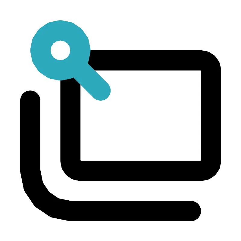 <svg fill="#000000" width="800px" height="800px" viewBox="0 0 24 24" id="sticky-notes-5" data-name="Line Color" xmlns="http://www.w3.org/2000/svg" class="icon line-color"><path id="primary" d="M8,6H20a1,1,0,0,1,1,1v9a1,1,0,0,1-1,1H8a1,1,0,0,1-1-1V7" style="fill: none; stroke: rgb(0, 0, 0); stroke-linecap: round; stroke-linejoin: round; stroke-width: 2;"></path><path id="primary-2" data-name="primary" d="M3,10v7a4,4,0,0,0,4,4H19" style="fill: none; stroke: rgb(0, 0, 0); stroke-linecap: round; stroke-linejoin: round; stroke-width: 2;"></path><path id="secondary" d="M4,5A2,2,0,0,0,6,7H6A2,2,0,0,0,8,5H8A2,2,0,0,0,6,3H6A2,2,0,0,0,4,5Zm6,4L7.41,6.41" style="fill: none; stroke: rgb(44, 169, 188); stroke-linecap: round; stroke-linejoin: round; stroke-width: 2;"></path></svg>