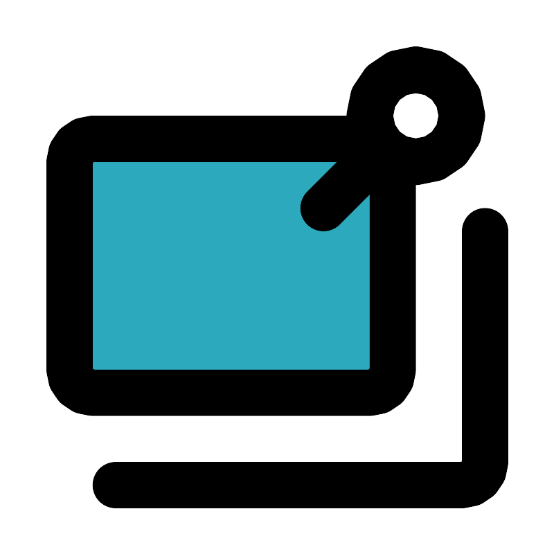 <svg fill="#000000" width="800px" height="800px" viewBox="0 0 24 24" id="sticky-notes-6" data-name="Flat Line" xmlns="http://www.w3.org/2000/svg" class="icon flat-line"><path id="secondary" d="M15,6H4A1,1,0,0,0,3,7v9a1,1,0,0,0,1,1H16a1,1,0,0,0,1-1V8A2,2,0,0,0,15,6Z" style="fill: rgb(44, 169, 188); stroke-width: 2;"></path><path id="primary" d="M17,7v9a1,1,0,0,1-1,1H4a1,1,0,0,1-1-1V7A1,1,0,0,1,4,6H16" style="fill: none; stroke: rgb(0, 0, 0); stroke-linecap: round; stroke-linejoin: round; stroke-width: 2;"></path><path id="primary-2" data-name="primary" d="M5,21H20a1,1,0,0,0,1-1V10" style="fill: none; stroke: rgb(0, 0, 0); stroke-linecap: round; stroke-linejoin: round; stroke-width: 2;"></path><path id="primary-3" data-name="primary" d="M20,5a2,2,0,0,0-2-2h0a2,2,0,0,0-2,2h0a2,2,0,0,0,2,2h0a2,2,0,0,0,2-2ZM16.59,6.41,14,9" style="fill: none; stroke: rgb(0, 0, 0); stroke-linecap: round; stroke-linejoin: round; stroke-width: 2;"></path></svg>