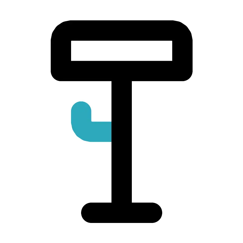 <svg fill="#000000" width="800px" height="800px" viewBox="0 0 24 24" id="stool-3" data-name="Line Color" xmlns="http://www.w3.org/2000/svg" class="icon line-color"><path id="secondary" d="M12,13H9a1,1,0,0,1-1-1V11" style="fill: none; stroke: rgb(44, 169, 188); stroke-linecap: round; stroke-linejoin: round; stroke-width: 2;"></path><path id="primary" d="M6,4A1,1,0,0,1,7,3H17a1,1,0,0,1,1,1V7H6Zm6,3V21m3,0H9" style="fill: none; stroke: rgb(0, 0, 0); stroke-linecap: round; stroke-linejoin: round; stroke-width: 2;"></path></svg>