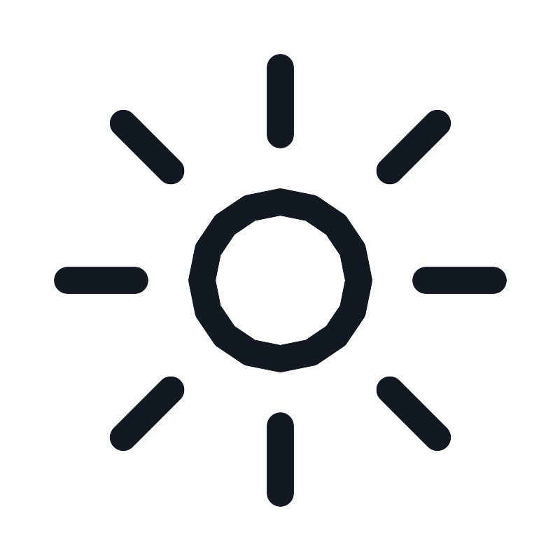 <path d="M19 12.5H22M3 12.5H6M12.5 6V3M12.5 22V19M17.3891 7.61091L19.5104 5.48959M5.48959 19.5104L7.61091 17.3891M7.61091 7.61091L5.48959 5.48959M19.5104 19.5104L17.3891 17.3891M16 12.5C16 14.433 14.433 16 12.5 16C10.567 16 9 14.433 9 12.5C9 10.567 10.567 9 12.5 9C14.433 9 16 10.567 16 12.5Z" stroke="#121923" stroke-width="1.2"/>