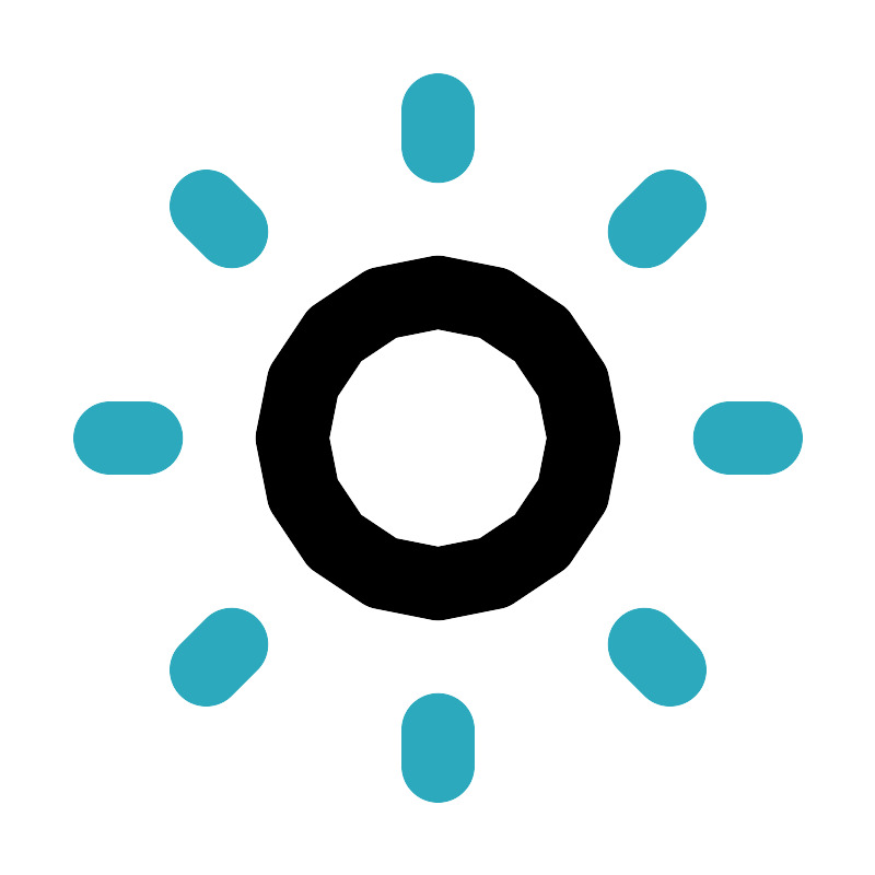 <svg fill="#000000" width="800px" height="800px" viewBox="0 0 24 24" id="sun" data-name="Line Color" xmlns="http://www.w3.org/2000/svg" class="icon line-color"><path id="secondary" d="M12,3V4M5.64,5.64l.7.7M3,12H4m1.64,6.36.7-.7M12,21V20m6.36-1.64-.7-.7M21,12H20M18.36,5.64l-.7.7" style="fill: none; stroke: rgb(44, 169, 188); stroke-linecap: round; stroke-linejoin: round; stroke-width: 2;"></path><circle id="primary" cx="12" cy="12" r="4" style="fill: none; stroke: rgb(0, 0, 0); stroke-linecap: round; stroke-linejoin: round; stroke-width: 2;"></circle></svg>