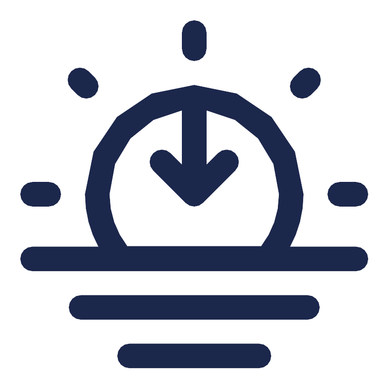 <path fill-rule="evenodd" clip-rule="evenodd" d="M12 1.25C12.4142 1.25 12.75 1.58579 12.75 2V3C12.75 3.41421 12.4142 3.75 12 3.75C11.5858 3.75 11.25 3.41421 11.25 3V2C11.25 1.58579 11.5858 1.25 12 1.25ZM4.39861 4.39861C4.6915 4.10572 5.16638 4.10572 5.45927 4.39861L5.85211 4.79145C6.145 5.08434 6.145 5.55921 5.85211 5.85211C5.55921 6.145 5.08434 6.145 4.79145 5.85211L4.39861 5.45927C4.10572 5.16638 4.10572 4.6915 4.39861 4.39861ZM19.6011 4.39887C19.894 4.69176 19.894 5.16664 19.6011 5.45953L19.2083 5.85237C18.9154 6.14526 18.4405 6.14526 18.1476 5.85237C17.8547 5.55947 17.8547 5.0846 18.1476 4.79171L18.5405 4.39887C18.8334 4.10598 19.3082 4.10598 19.6011 4.39887ZM11.25 6.80317C8.70578 7.16709 6.75 9.35515 6.75 12C6.75 13.2135 7.16093 14.3296 7.85208 15.2187H16.1479C16.8391 14.3296 17.25 13.2135 17.25 12C17.25 9.35515 15.2942 7.16709 12.75 6.80317V10.1893L13.4697 9.46967C13.7626 9.17678 14.2374 9.17678 14.5303 9.46967C14.8232 9.76256 14.8232 10.2374 14.5303 10.5303L12.5303 12.5303C12.2374 12.8232 11.7626 12.8232 11.4697 12.5303L9.46967 10.5303C9.17678 10.2374 9.17678 9.76256 9.46967 9.46967C9.76256 9.17678 10.2374 9.17678 10.5303 9.46967L11.25 10.1893V6.80317ZM6.08267 15.25C5.5521 14.2858 5.25 13.1778 5.25 12C5.25 8.27208 8.27208 5.25 12 5.25C15.7279 5.25 18.75 8.27208 18.75 12C18.75 13.1778 18.4479 14.2858 17.9173 15.25H22C22.4142 15.25 22.75 15.5858 22.75 16C22.75 16.4142 22.4142 16.75 22 16.75H2C1.58579 16.75 1.25 16.4142 1.25 16C1.25 15.5858 1.58579 15.25 2 15.25H6.08267ZM1.25 12C1.25 11.5858 1.58579 11.25 2 11.25H3C3.41421 11.25 3.75 11.5858 3.75 12C3.75 12.4142 3.41421 12.75 3 12.75H2C1.58579 12.75 1.25 12.4142 1.25 12ZM20.25 12C20.25 11.5858 20.5858 11.25 21 11.25H22C22.4142 11.25 22.75 11.5858 22.75 12C22.75 12.4142 22.4142 12.75 22 12.75H21C20.5858 12.75 20.25 12.4142 20.25 12ZM4.25 19C4.25 18.5858 4.58579 18.25 5 18.25H19C19.4142 18.25 19.75 18.5858 19.75 19C19.75 19.4142 19.4142 19.75 19 19.75H5C4.58579 19.75 4.25 19.4142 4.25 19ZM7.25 22C7.25 21.5858 7.58579 21.25 8 21.25H16C16.4142 21.25 16.75 21.5858 16.75 22C16.75 22.4142 16.4142 22.75 16 22.75H8C7.58579 22.75 7.25 22.4142 7.25 22Z" fill="#1C274C"/>