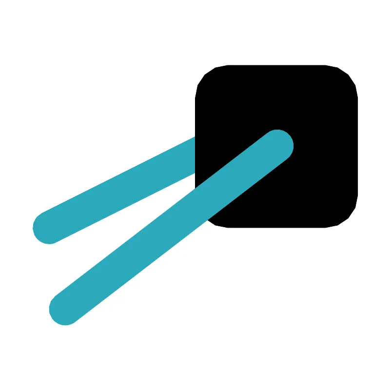 <svg fill="#000000" width="800px" height="800px" viewBox="0 0 24 24" id="sushi-2" data-name="Flat Color" xmlns="http://www.w3.org/2000/svg" class="icon flat-color"><path id="secondary" d="M3,15a1,1,0,0,1-.89-.55,1,1,0,0,1,.44-1.34l10-5a1,1,0,1,1,.9,1.78l-10,5A.93.93,0,0,1,3,15Z" style="fill: rgb(44, 169, 188);"></path><rect id="primary" x="12" y="4" width="10" height="10" rx="2" style="fill: rgb(0, 0, 0);"></rect><path id="secondary-2" data-name="secondary" d="M4,20a1,1,0,0,1-.79-.39,1,1,0,0,1,.18-1.4l13-10a1,1,0,1,1,1.22,1.58l-13,10A1,1,0,0,1,4,20Z" style="fill: rgb(44, 169, 188);"></path></svg>