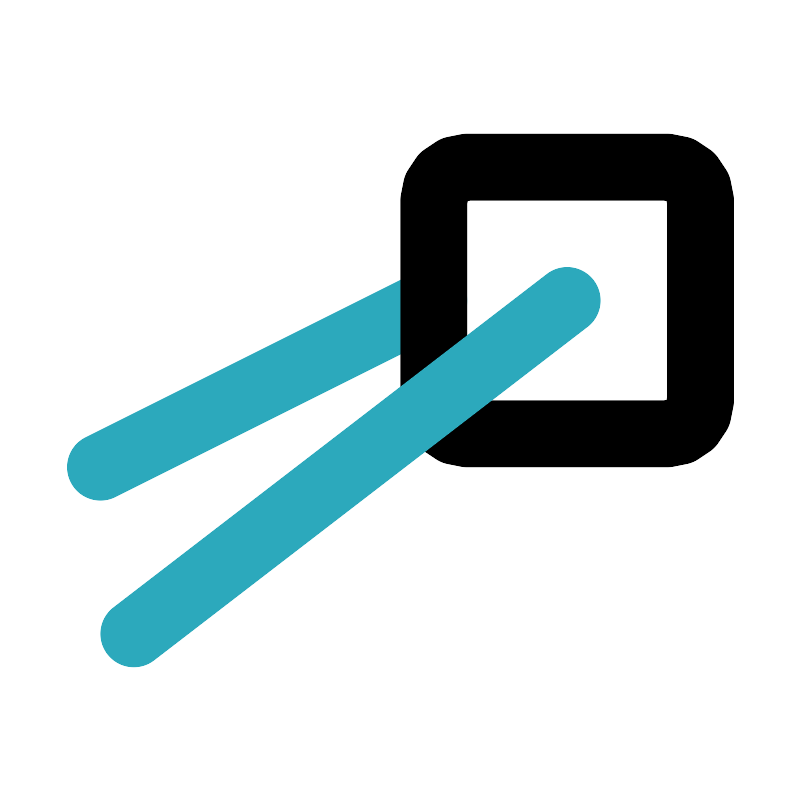 <svg fill="#000000" width="800px" height="800px" viewBox="0 0 24 24" id="sushi-2" data-name="Line Color" xmlns="http://www.w3.org/2000/svg" class="icon line-color"><line id="secondary" x1="13" y1="9" x2="3" y2="14" style="fill: none; stroke: rgb(44, 169, 188); stroke-linecap: round; stroke-linejoin: round; stroke-width: 2;"></line><rect id="primary" x="13" y="5" width="8" height="8" rx="1" style="fill: none; stroke: rgb(0, 0, 0); stroke-linecap: round; stroke-linejoin: round; stroke-width: 2;"></rect><line id="secondary-2" data-name="secondary" x1="4" y1="19" x2="17" y2="9" style="fill: none; stroke: rgb(44, 169, 188); stroke-linecap: round; stroke-linejoin: round; stroke-width: 2;"></line></svg>