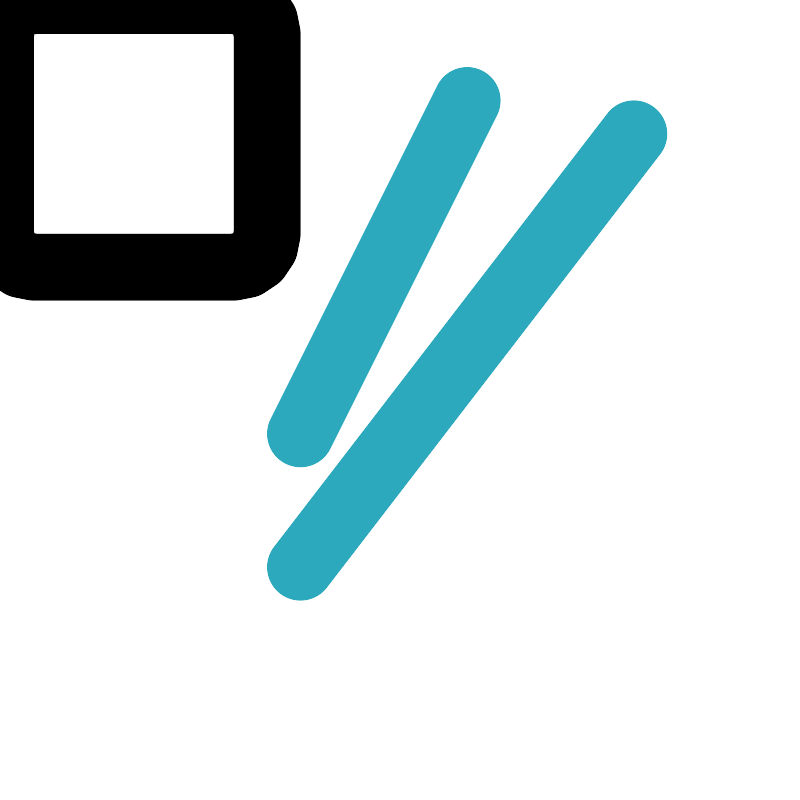 <svg fill="#000000" width="800px" height="800px" viewBox="0 0 24 24" id="sushi-3" data-name="Line Color" xmlns="http://www.w3.org/2000/svg" class="icon line-color"><line id="secondary" x1="14" y1="3" x2="9" y2="13" style="fill: none; stroke: rgb(44, 169, 188); stroke-linecap: round; stroke-linejoin: round; stroke-width: 2;"></line><rect id="primary" x="5" y="13" width="8" height="8" rx="1" transform="translate(26 8) rotate(90)" style="fill: none; stroke: rgb(0, 0, 0); stroke-linecap: round; stroke-linejoin: round; stroke-width: 2;"></rect><line id="secondary-2" data-name="secondary" x1="9" y1="17" x2="19" y2="4" style="fill: none; stroke: rgb(44, 169, 188); stroke-linecap: round; stroke-linejoin: round; stroke-width: 2;"></line></svg>