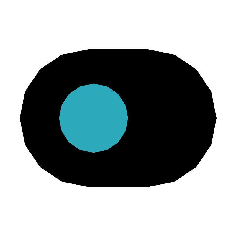 <svg fill="#000000" width="800px" height="800px" viewBox="0 0 24 24" id="switch-left" data-name="Flat Color" xmlns="http://www.w3.org/2000/svg" class="icon flat-color"><path id="primary" d="M15,5H9A7,7,0,0,0,9,19h6A7,7,0,0,0,15,5Z" style="fill: rgb(0, 0, 0);"></path><circle id="secondary" cx="9.5" cy="12" r="3.5" style="fill: rgb(44, 169, 188);"></circle></svg>