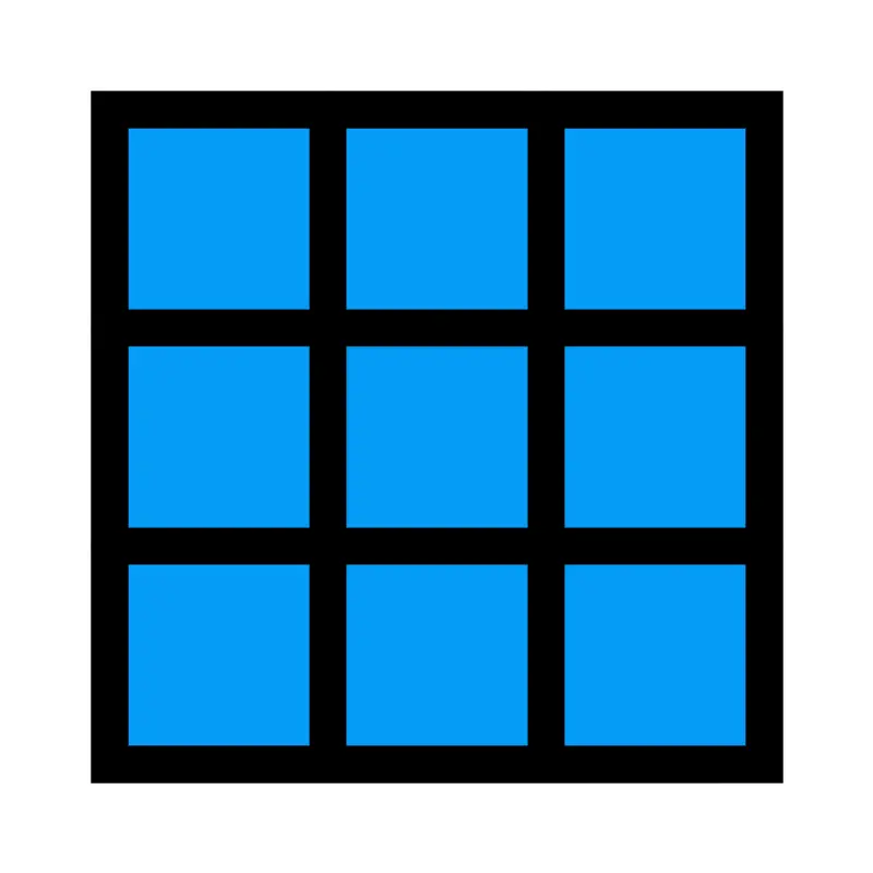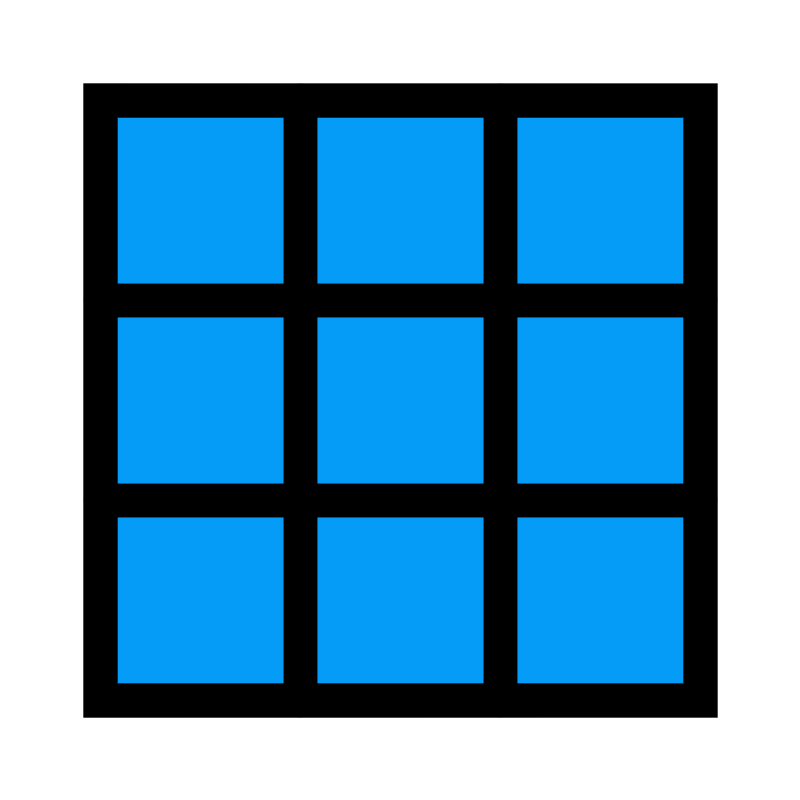 <svg width="800px" height="800px" viewBox="0 0 24 24" xmlns="http://www.w3.org/2000/svg" fill="none" stroke="#000000" stroke-width="1" stroke-linecap="round" stroke-linejoin="miter"><rect x="3" y="3" width="18" height="18" rx="0" fill="#059cf7" opacity="0.1"></rect><rect x="3" y="3" width="18" height="18" rx="0"></rect><line x1="9" y1="3" x2="9" y2="21"></line><line x1="15" y1="3" x2="15" y2="21"></line><line x1="21" y1="9" x2="3" y2="9"></line><line x1="21" y1="15" x2="3" y2="15"></line></svg>