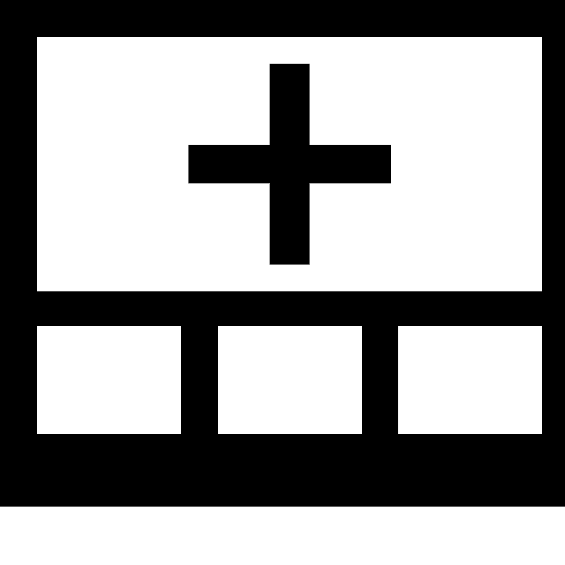 <path d="M6.656 6.464h2.88v2.88h1.408v-2.88h2.88V5.12h-2.88V2.24H9.536v2.88h-2.88zM0 17.92V0h20.48v17.92H0zm7.68-2.56h5.12v-3.84H7.68v3.84zm-6.4 0H6.4v-3.84H1.28v3.84zM19.2 1.28H1.28v9.024H19.2V1.28zm0 10.24h-5.12v3.84h5.12v-3.84z"/>