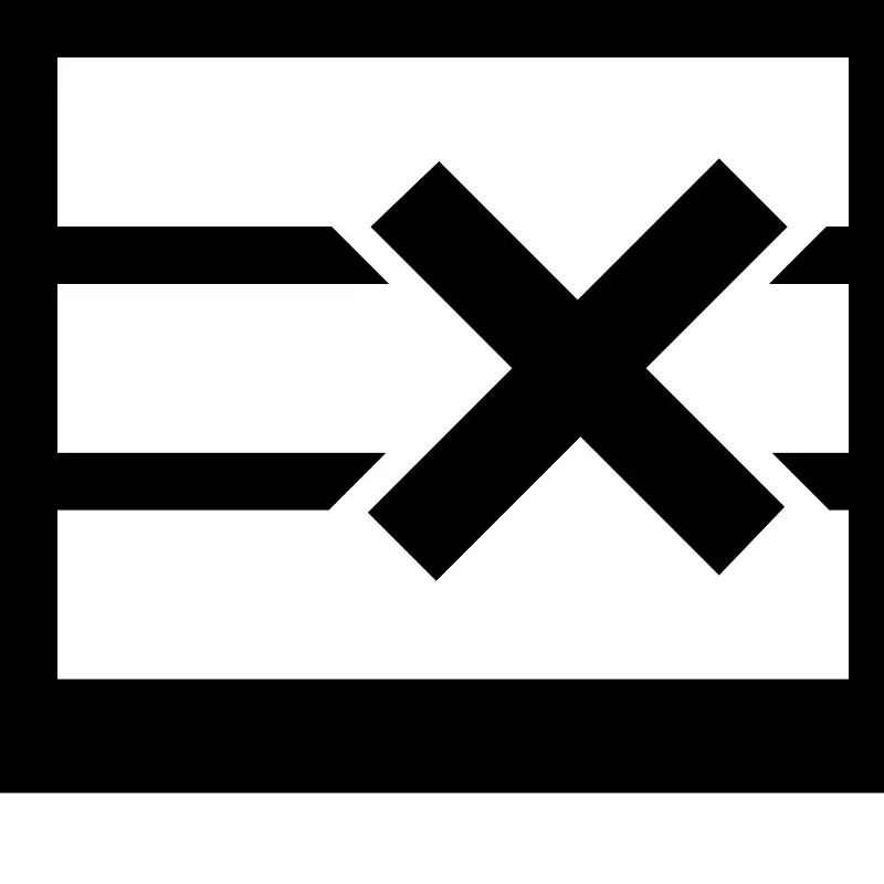 <path d="M17.728 11.456L14.592 8.32l3.2-3.2-1.536-1.536-3.2 3.2L9.92 3.648 8.384 5.12l3.2 3.2-3.264 3.264 1.536 1.536 3.264-3.264 3.136 3.136 1.472-1.536zM0 17.92V0h20.48v17.92H0zm19.2-6.4h-.448l-1.28-1.28H19.2V6.4h-1.792l1.28-1.28h.512V1.28H1.28v3.84h6.208l1.28 1.28H1.28v3.84h7.424l-1.28 1.28H1.28v3.84H19.2v-3.84z"/>