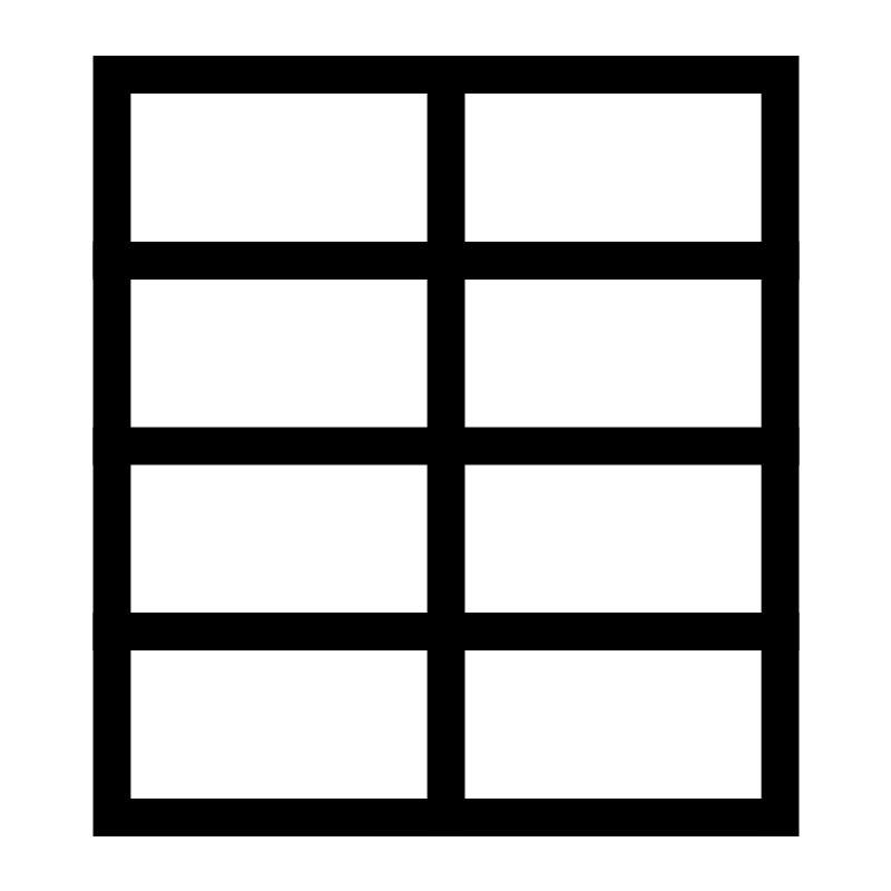 <svg width="800px" height="800px" viewBox="0 0 24 24" xmlns="http://www.w3.org/2000/svg" aria-labelledby="tableVerticalIconTitle" stroke="#000000" stroke-width="1" stroke-linecap="square" stroke-linejoin="miter" fill="none" color="#000000"> <title id="tableVerticalIconTitle">Data table</title> <rect x="3" y="2" width="18" height="20"/> <line x1="12" y1="2" x2="12" y2="22"/> <line x1="21" y1="7" x2="3" y2="7"/> <line x1="21" y1="17" x2="3" y2="17"/> <line x1="21" y1="12" x2="3" y2="12"/> </svg>