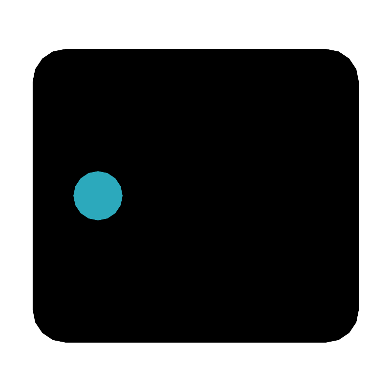 <svg fill="#000000" width="800px" height="800px" viewBox="0 0 24 24" id="tablet-lanscape-right" data-name="Flat Color" xmlns="http://www.w3.org/2000/svg" class="icon flat-color"><rect id="primary" x="2" y="3" width="20" height="18" rx="2" style="fill: rgb(0, 0, 0);"></rect><circle id="secondary" cx="6" cy="12" r="1.5" style="fill: rgb(44, 169, 188);"></circle></svg>