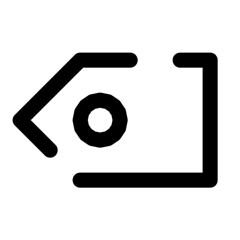 <path d="M5 15L2 12L8 6H13M8 18H21V6H18M12 12C12 13.1046 11.1046 14 10 14C8.89543 14 8 13.1046 8 12C8 10.8954 8.89543 10 10 10C11.1046 10 12 10.8954 12 12Z" stroke="#000000" stroke-width="1.5" stroke-linecap="round" stroke-linejoin="round"/>