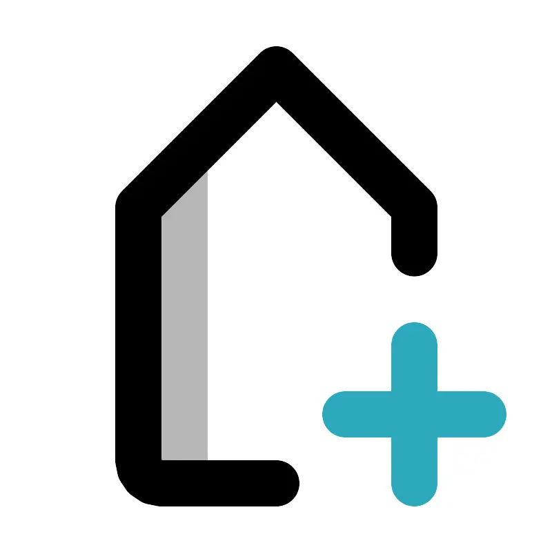 <svg width="800px" height="800px" viewBox="0 0 24 24" id="tag-add" xmlns="http://www.w3.org/2000/svg" class="icon multi-color"><title style="stroke-width: 2;">tag add</title><path id="tertiary-fill" d="M9,6V21H7a1,1,0,0,1-1-1V9Z" style="fill: #b7b7b7; stroke-width: 2;"></path><path id="primary-stroke" d="M12,21H7a1,1,0,0,1-1-1V9l6-6,6,6v2" style="fill: none; stroke: rgb(0, 0, 0); stroke-linecap: round; stroke-linejoin: round; stroke-width: 2;"></path><path id="secondary-stroke" d="M18,15v6m3-3H15" style="fill: none; stroke: rgb(44, 169, 188); stroke-linecap: round; stroke-linejoin: round; stroke-width: 2;"></path></svg>