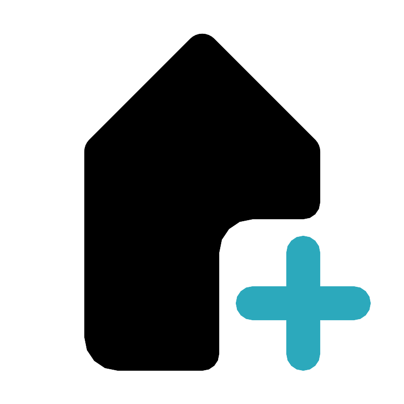 <svg fill="#000000" width="800px" height="800px" viewBox="0 0 24 24" id="tag-add" data-name="Flat Color" xmlns="http://www.w3.org/2000/svg" class="icon flat-color"><path id="secondary" d="M18,22a1,1,0,0,1-1-1V19H15a1,1,0,0,1,0-2h2V15a1,1,0,0,1,2,0v2h2a1,1,0,0,1,0,2H19v2A1,1,0,0,1,18,22Z" style="fill: rgb(44, 169, 188);"></path><path id="primary" d="M15,13h3a1,1,0,0,0,1-1V9a1,1,0,0,0-.29-.71l-6-6a1,1,0,0,0-1.42,0l-6,6A1,1,0,0,0,5,9V20a2,2,0,0,0,2,2h5a1,1,0,0,0,1-1V15A2,2,0,0,1,15,13Z" style="fill: rgb(0, 0, 0);"></path></svg>