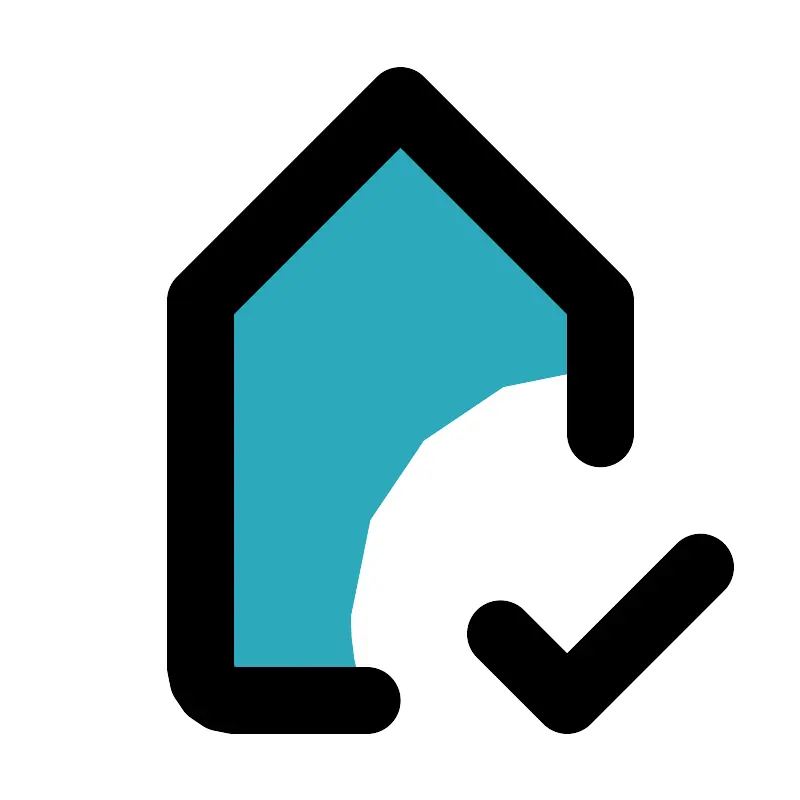 <svg fill="#000000" width="800px" height="800px" viewBox="0 0 24 24" id="tag-check" data-name="Flat Line" xmlns="http://www.w3.org/2000/svg" class="icon flat-line"><path id="secondary" d="M18,9v2a7.5,7.5,0,0,0-7.5,7.5,7.15,7.15,0,0,0,.44,2.5H7a1,1,0,0,1-1-1V9l6-6Z" style="fill: rgb(44, 169, 188); stroke-width: 2;"></path><polyline id="primary" points="15 19 17 21 21 17" style="fill: none; stroke: rgb(0, 0, 0); stroke-linecap: round; stroke-linejoin: round; stroke-width: 2;"></polyline><path id="primary-2" data-name="primary" d="M11,21H7a1,1,0,0,1-1-1V9l6-6,6,6v4" style="fill: none; stroke: rgb(0, 0, 0); stroke-linecap: round; stroke-linejoin: round; stroke-width: 2;"></path></svg>