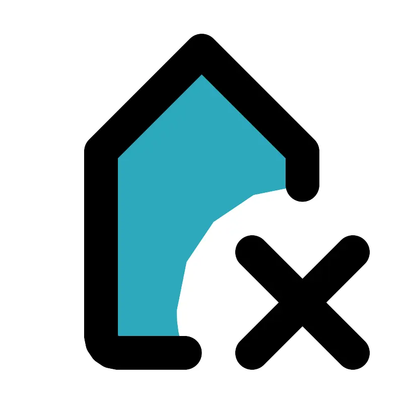 <svg fill="#000000" width="800px" height="800px" viewBox="0 0 24 24" id="tag-close" data-name="Flat Line" xmlns="http://www.w3.org/2000/svg" class="icon flat-line"><path id="secondary" d="M18,9v2a7.5,7.5,0,0,0-7.5,7.5,7.15,7.15,0,0,0,.44,2.5H7a1,1,0,0,1-1-1V9l6-6Z" style="fill: rgb(44, 169, 188); stroke-width: 2;"></path><line id="primary" x1="15" y1="21" x2="21" y2="15" style="fill: none; stroke: rgb(0, 0, 0); stroke-linecap: round; stroke-linejoin: round; stroke-width: 2;"></line><line id="primary-2" data-name="primary" x1="21" y1="21" x2="15" y2="15" style="fill: none; stroke: rgb(0, 0, 0); stroke-linecap: round; stroke-linejoin: round; stroke-width: 2;"></line><path id="primary-3" data-name="primary" d="M11,21H7a1,1,0,0,1-1-1V9l6-6,6,6v2" style="fill: none; stroke: rgb(0, 0, 0); stroke-linecap: round; stroke-linejoin: round; stroke-width: 2;"></path></svg>