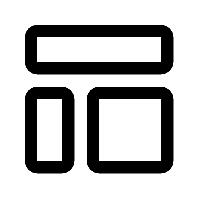 <svg fill="#000000" width="800px" height="800px" viewBox="0 0 32 32" id="icon" xmlns="http://www.w3.org/2000/svg"><defs><style>.cls-1{fill:none;}</style></defs><title>template</title><path d="M26,6v4H6V6H26m0-2H6A2,2,0,0,0,4,6v4a2,2,0,0,0,2,2H26a2,2,0,0,0,2-2V6a2,2,0,0,0-2-2Z"/><path d="M10,16V26H6V16h4m0-2H6a2,2,0,0,0-2,2V26a2,2,0,0,0,2,2h4a2,2,0,0,0,2-2V16a2,2,0,0,0-2-2Z"/><path d="M26,16V26H16V16H26m0-2H16a2,2,0,0,0-2,2V26a2,2,0,0,0,2,2H26a2,2,0,0,0,2-2V16a2,2,0,0,0-2-2Z"/><rect class="cls-1" width="32" height="32"/></svg>