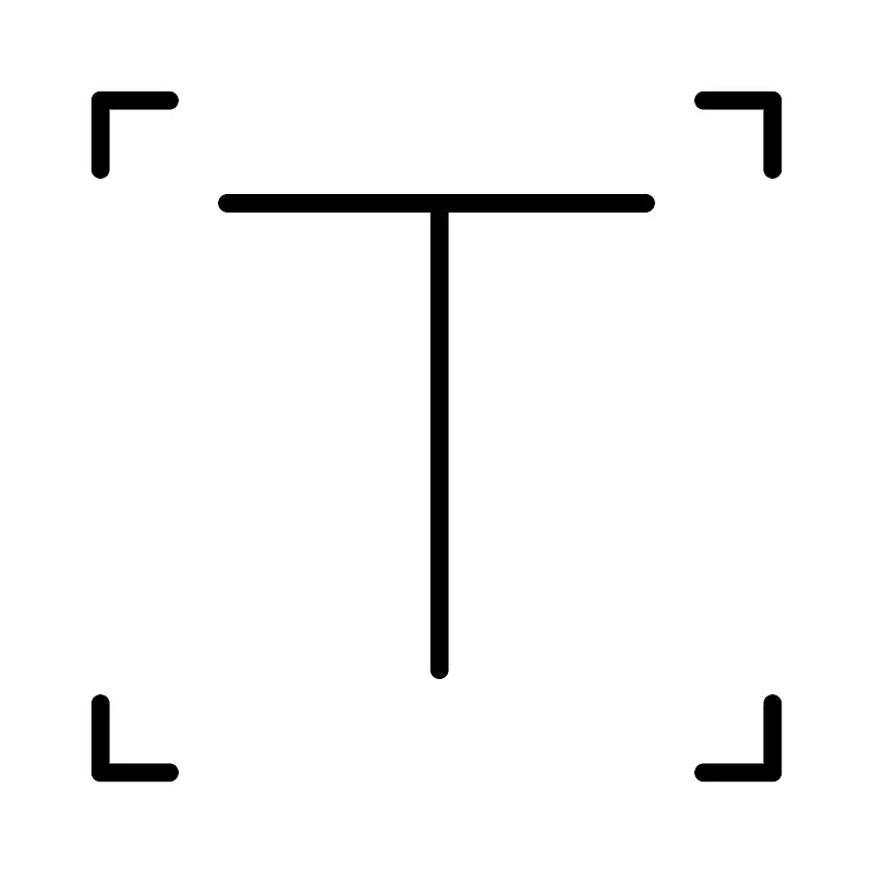<svg width="800px" height="800px" viewBox="0 0 48 48" xmlns="http://www.w3.org/2000/svg"><defs><style>.a{fill:none;stroke:#000000;stroke-linecap:round;stroke-linejoin:round;}</style></defs><path class="a" d="M9.2955,5.5H5.5V9.2955"/><path class="a" d="M42.5,9.2955V5.5H38.7043"/><path class="a" d="M38.7044,42.5H42.5V38.7043"/><path class="a" d="M5.5,38.7044V42.5H9.2955"/><line class="a" x1="12.4853" y1="11.1563" x2="35.5134" y2="11.1563"/><line class="a" x1="24.1599" y1="36.8429" x2="24.1599" y2="11.1563"/></svg>