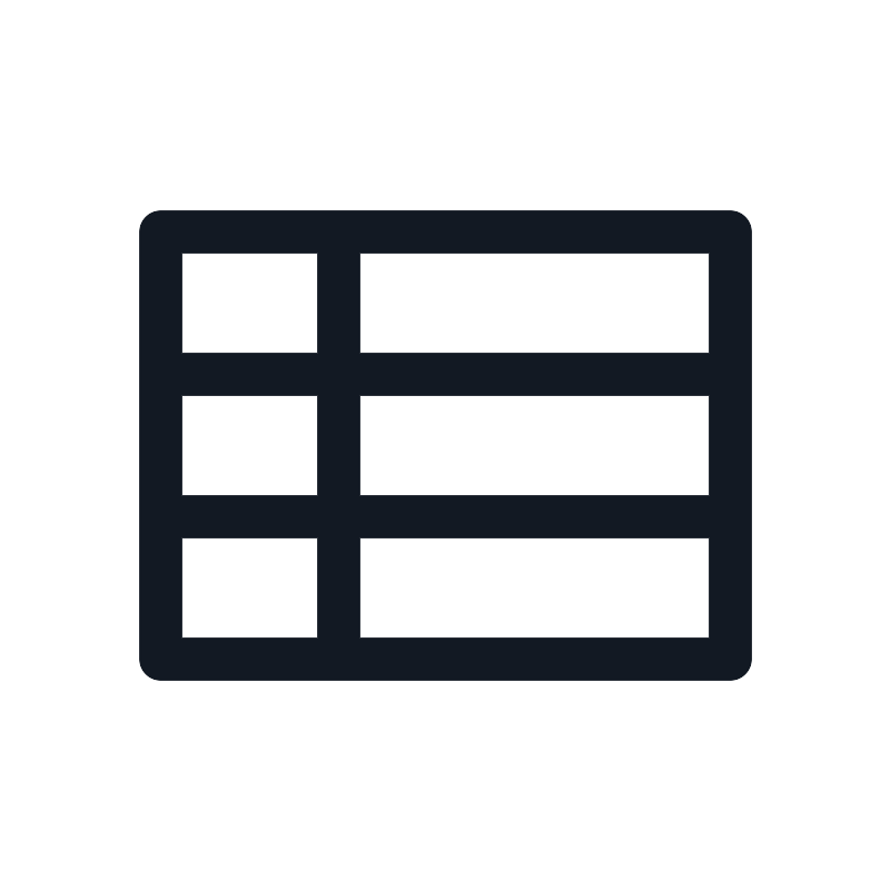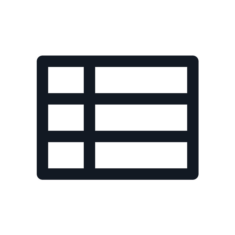 <path d="M9.5 6.5V10.5M9.5 10.5V14.5M9.5 10.5H20.5M9.5 10.5H4.5M9.5 14.5V18.5M9.5 14.5H20.5M9.5 14.5H4.5M4.5 6.5H20.5V18.5H4.5V6.5Z" stroke="#121923" stroke-width="1.2"/>