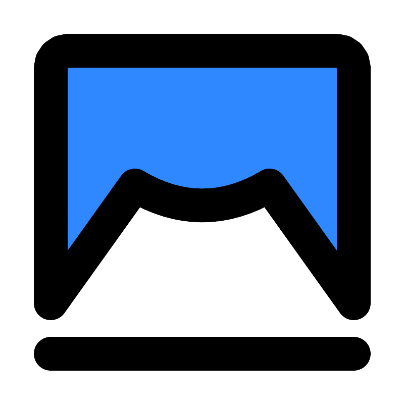 <path fill-rule="evenodd" clip-rule="evenodd" d="M8 6H40C41.1046 6 42 6.89543 42 8V36L32 22.0053C29.3333 23.5901 26.6667 24.3825 24 24.3825C21.3333 24.3825 18.6667 23.5901 16 22.0053L6 36V8C6 6.89543 6.89543 6 8 6Z" fill="#2F88FF" stroke="#000000" stroke-width="4" stroke-linejoin="round"/>