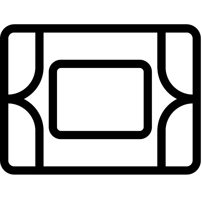 <svg fill="#000000" width="800px" height="800px" viewBox="0 0 1024 1024" xmlns="http://www.w3.org/2000/svg"><path d="M707.564 663.523c11.309 0 20.48-9.171 20.48-20.48V363.962c0-11.309-9.171-20.48-20.48-20.48H308.317c-11.315 0-20.48 9.166-20.48 20.48v279.081c0 11.314 9.165 20.48 20.48 20.48h399.247zm0 40.96H308.317c-33.938 0-61.44-27.506-61.44-61.44V363.962c0-33.934 27.502-61.44 61.44-61.44h399.247c33.931 0 61.44 27.509 61.44 61.44v279.081c0 33.931-27.509 61.44-61.44 61.44z"/><path d="M945.443 843.164c16.972 0 30.72-13.748 30.72-30.72V194.562c0-16.972-13.748-30.72-30.72-30.72H71.674c-16.966 0-30.72 13.752-30.72 30.72v617.882c0 16.968 13.754 30.72 30.72 30.72h873.769zm0 40.96H71.674c-39.586 0-71.68-32.089-71.68-71.68V194.562c0-39.591 32.094-71.68 71.68-71.68h873.769c39.594 0 71.68 32.086 71.68 71.68v617.882c0 39.594-32.086 71.68-71.68 71.68z"/><path d="M38.939 523.178c77.267 0 139.909 62.645 139.909 139.919v192.461h40.96V663.097c0-99.895-80.981-180.879-180.869-180.879v40.96zm957.704-40.96h-18.35c-99.889 0-180.869 80.984-180.869 180.879v192.461h40.96V663.097c0-77.274 62.643-139.919 139.909-139.919h18.35v-40.96z"/><path d="M13.603 520.179h25.334c99.894 0 180.869-80.979 180.869-180.869V149.665h-40.96V339.31c0 77.269-62.637 139.909-139.909 139.909H13.603v40.96zm983.04-40.96h-18.35c-77.265 0-139.909-62.644-139.909-139.909V149.665h-40.96V339.31c0 99.887 80.982 180.869 180.869 180.869h18.35v-40.96z"/></svg>
