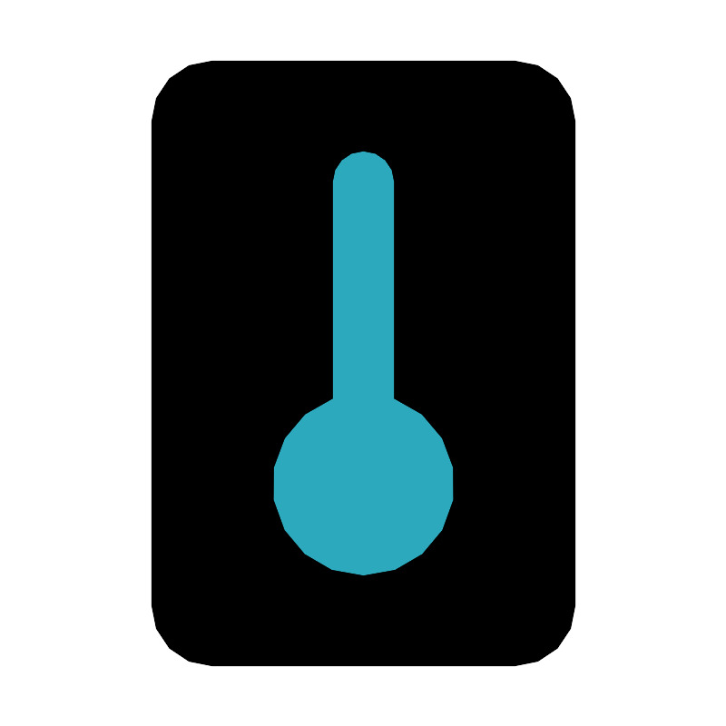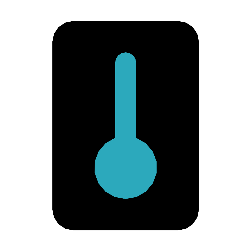 <svg fill="#000000" width="800px" height="800px" viewBox="0 0 24 24" id="thermometer" data-name="Flat Color" xmlns="http://www.w3.org/2000/svg" class="icon flat-color"><rect id="primary" x="5" y="2" width="14" height="20" rx="2" style="fill: rgb(0, 0, 0);"></rect><path id="secondary" d="M13,13.17V6a1,1,0,0,0-2,0v7.17a3,3,0,1,0,2,0Z" style="fill: rgb(44, 169, 188);"></path></svg>