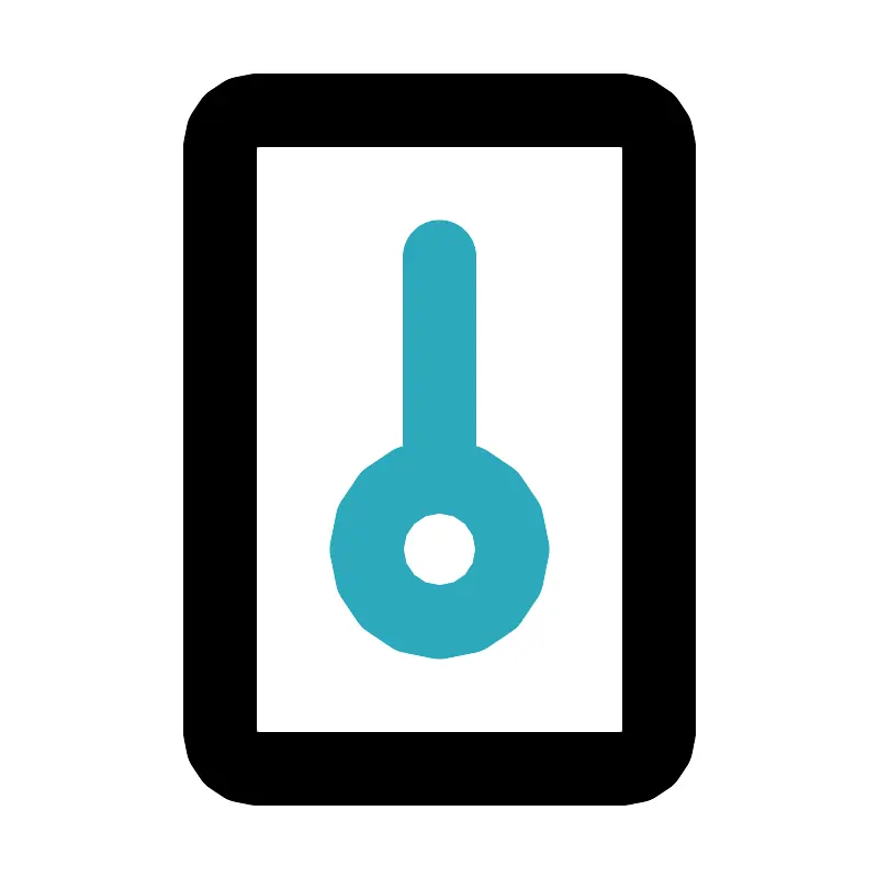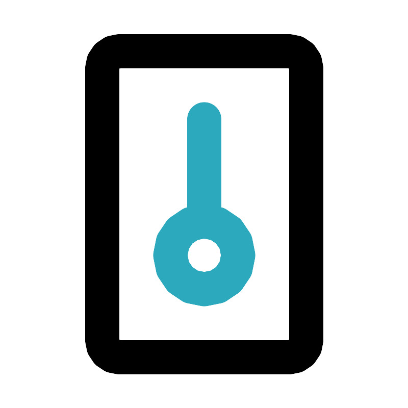 <svg fill="#000000" width="800px" height="800px" viewBox="0 0 24 24" id="thermometer" data-name="Line Color" xmlns="http://www.w3.org/2000/svg" class="icon line-color"><path id="secondary" d="M12,7v6m2,2a2,2,0,1,0-2,2A2,2,0,0,0,14,15Z" style="fill: none; stroke: rgb(44, 169, 188); stroke-linecap: round; stroke-linejoin: round; stroke-width: 2;"></path><rect id="primary" x="6" y="3" width="12" height="18" rx="1" style="fill: none; stroke: rgb(0, 0, 0); stroke-linecap: round; stroke-linejoin: round; stroke-width: 2;"></rect></svg>