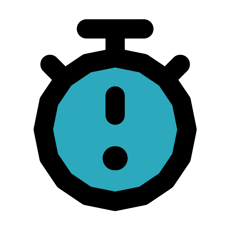 <svg fill="#000000" width="800px" height="800px" viewBox="0 0 24 24" id="timer-error" data-name="Flat Line" xmlns="http://www.w3.org/2000/svg" class="icon flat-line"><circle id="secondary" cx="12" cy="13.5" r="7.5" style="fill: rgb(44, 169, 188); stroke-width: 2;"></circle><line id="primary-upstroke" x1="12.05" y1="16.5" x2="11.95" y2="16.5" style="fill: none; stroke: rgb(0, 0, 0); stroke-linecap: round; stroke-linejoin: round; stroke-width: 2.5;"></line><path id="primary" d="M12,12V10m5.3-1.8,1.5-1.5M6.7,8.2,5.2,6.7m-.7,6.8A7.5,7.5,0,1,0,12,6,7.5,7.5,0,0,0,4.5,13.5ZM12,6V3M9,3h6" style="fill: none; stroke: rgb(0, 0, 0); stroke-linecap: round; stroke-linejoin: round; stroke-width: 2;"></path></svg>