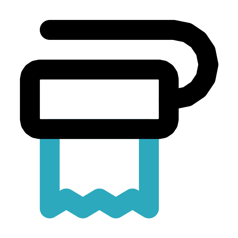 <svg fill="#000000" width="800px" height="800px" viewBox="0 0 24 24" id="toilet-paper-11" data-name="Line Color" xmlns="http://www.w3.org/2000/svg" class="icon line-color"><polygon id="secondary" points="15 13 15 21 13.34 20 11.67 21 10.01 20 8.34 21 6.67 20 5 21 5 13 15 13" style="fill: none; stroke: rgb(44, 169, 188); stroke-linecap: round; stroke-linejoin: round; stroke-width: 2;"></polygon><rect id="primary" x="3" y="7" width="14" height="6" rx="1" style="fill: none; stroke: rgb(0, 0, 0); stroke-linecap: round; stroke-linejoin: round; stroke-width: 2;"></rect><path id="primary-2" data-name="primary" d="M5,3H17.5A3.5,3.5,0,0,1,21,6.5h0A3.5,3.5,0,0,1,17.5,10H17" style="fill: none; stroke: rgb(0, 0, 0); stroke-linecap: round; stroke-linejoin: round; stroke-width: 2;"></path></svg>